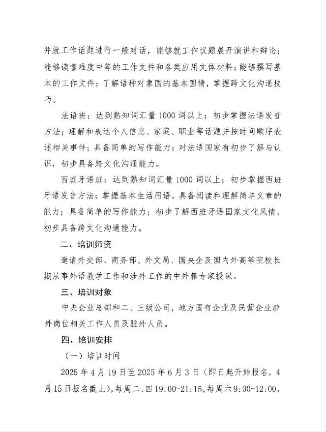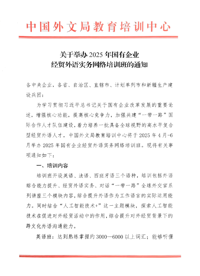 【招生通知】关于举办2025年国有企业经贸外语实务网络培训班的通知